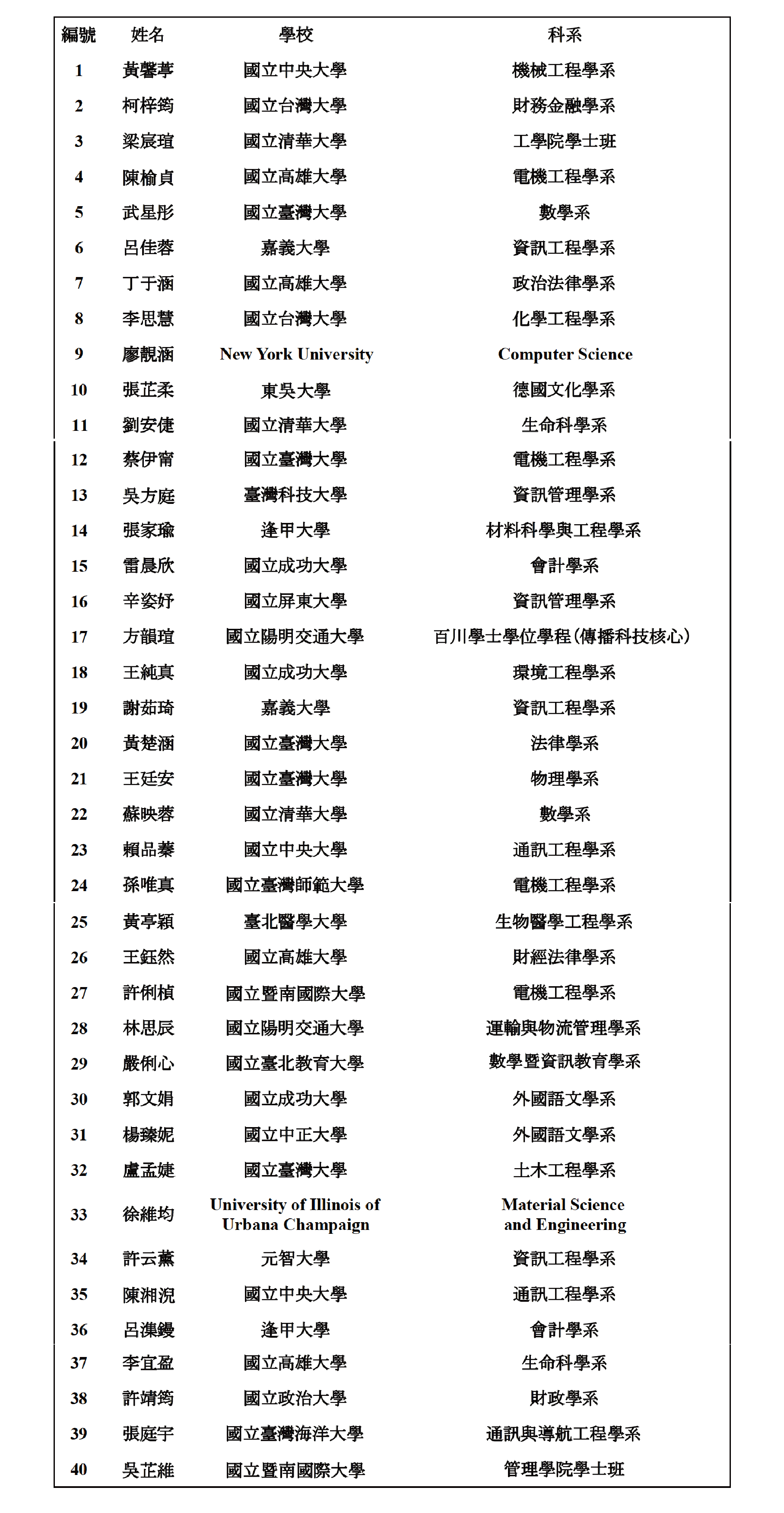 備註: 編號為主辦單位隨機排序
